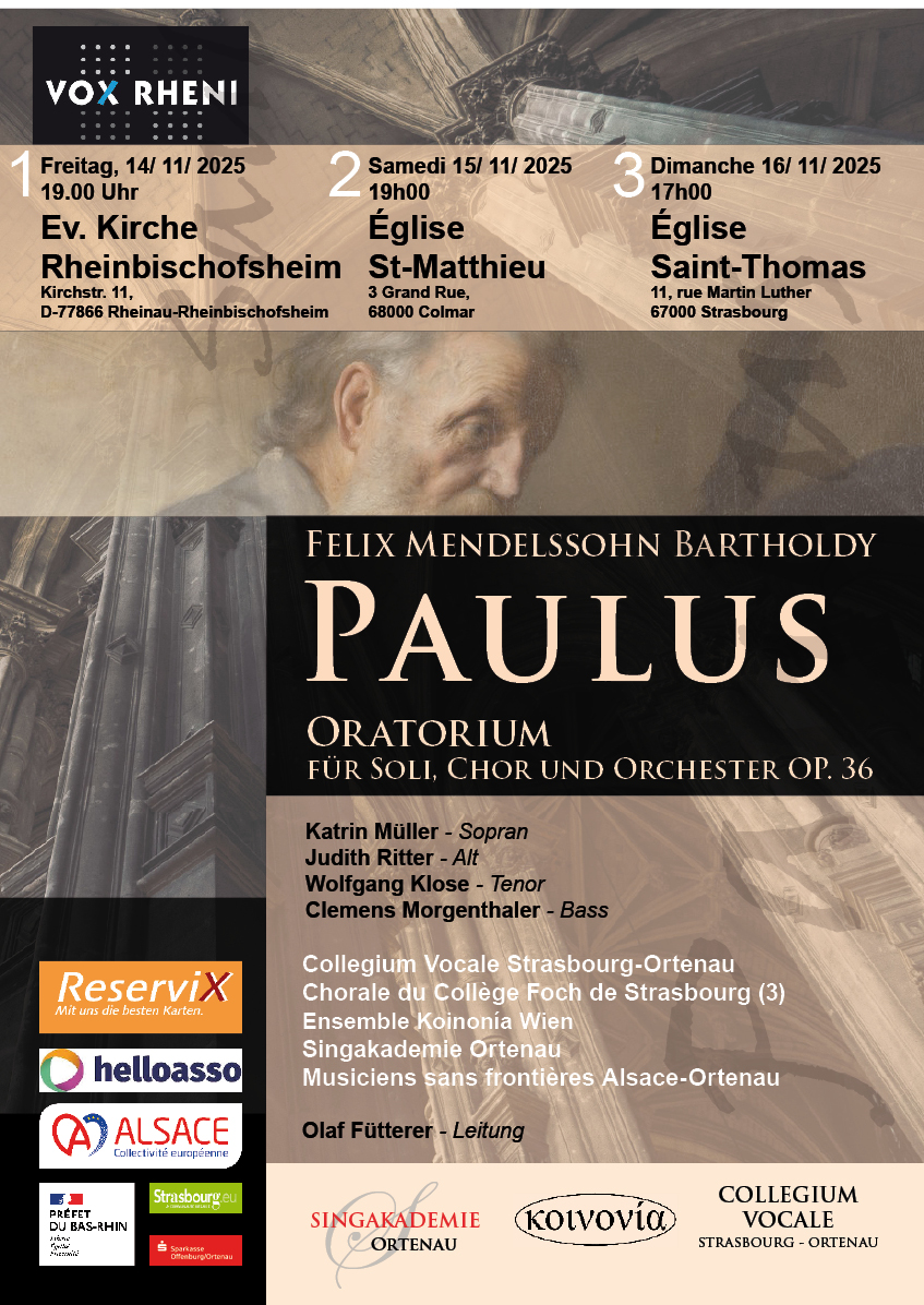Aktuell! Unsere nächsten Konzerte am 14., 15. und 16. November 2025: Paulus von Mendelssohn (Weitere Informationen hier).